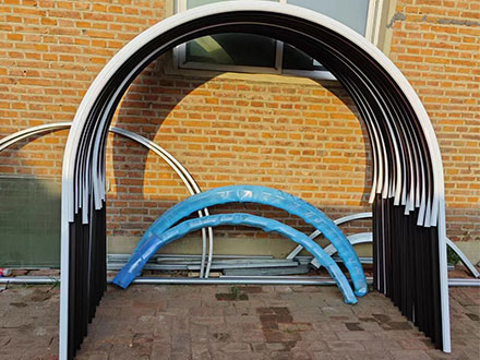 【产品简介】断桥弯弧是一种采用隔热断桥铝型材和中空玻璃制作而成的新型门窗材料。它具有节能、隔音、防水、防尘、美观等优点,广泛应用于建筑门窗、幕墙、阳光房等领域。